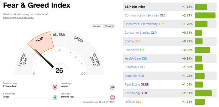 3월 14일 미국주식은 다우지수 336.26포인트(1.06%) 상승마감하였고 S&P지수는 1.65% 상승, 나스닥 종합지수 2.14% 상승마감했습니다. 지역은행사태가 당국의 조치로 그 위험성이 사라졌다고 베팅한 결과로 보이네요. 장 시작 전에 은행주의 매수세가 이어졌는데 오후에는 그 열기가 다소 주춤했습니다.